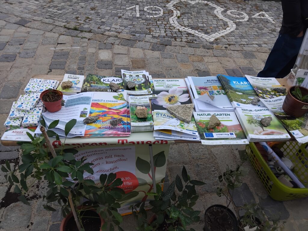 Der Schwerpunkt lag dabei auf heimischen, trockenheitsverträglichen Pflanzen, die sich besonders gut an das lokale Klima anpassen und wertvolle Lebensräume für Insekten und andere Tiere schaffen. Begleitend dazu lagen Informationsmaterialien zu Themen wie naturnahem Gärtnern und dem Umgang mit invasiven Neophyten auf, die reges Interesse fanden.